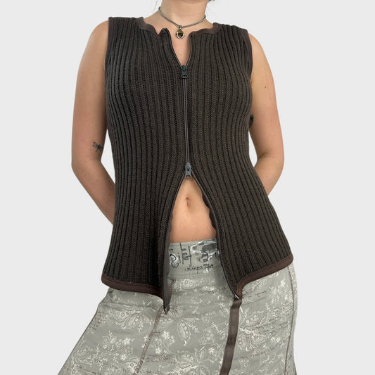 Cop Copine Brown Sleeveless Double Zip Jumper - M/L