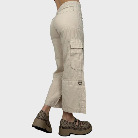 Cop Copine Beige Lightweight Wide Leg Cargo Trousers - S