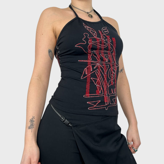 Save The Queen Graphic Halter Neck Top - M