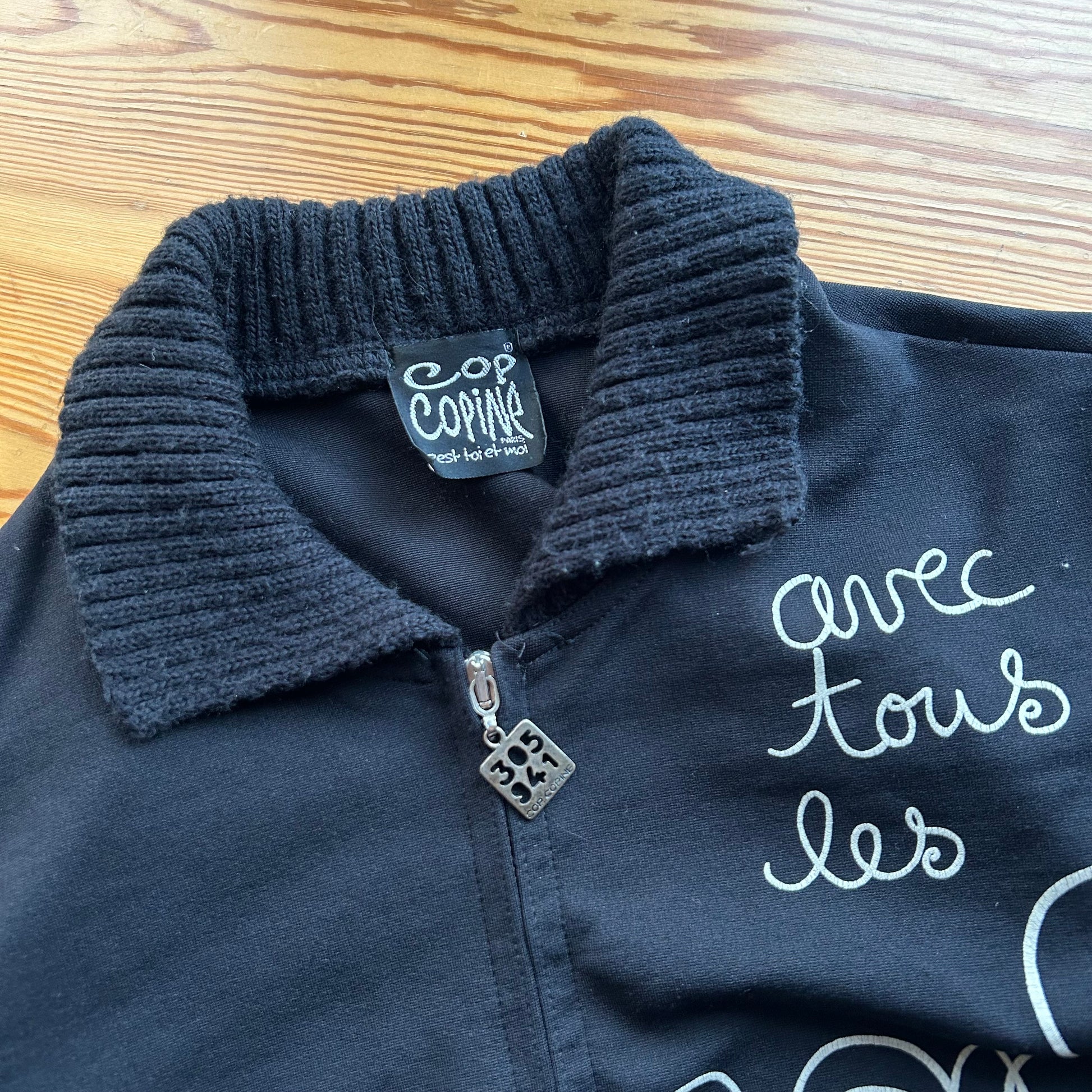 Graphic striped print with knit sleeves. Features original 1980s vintage Cop Copine label.