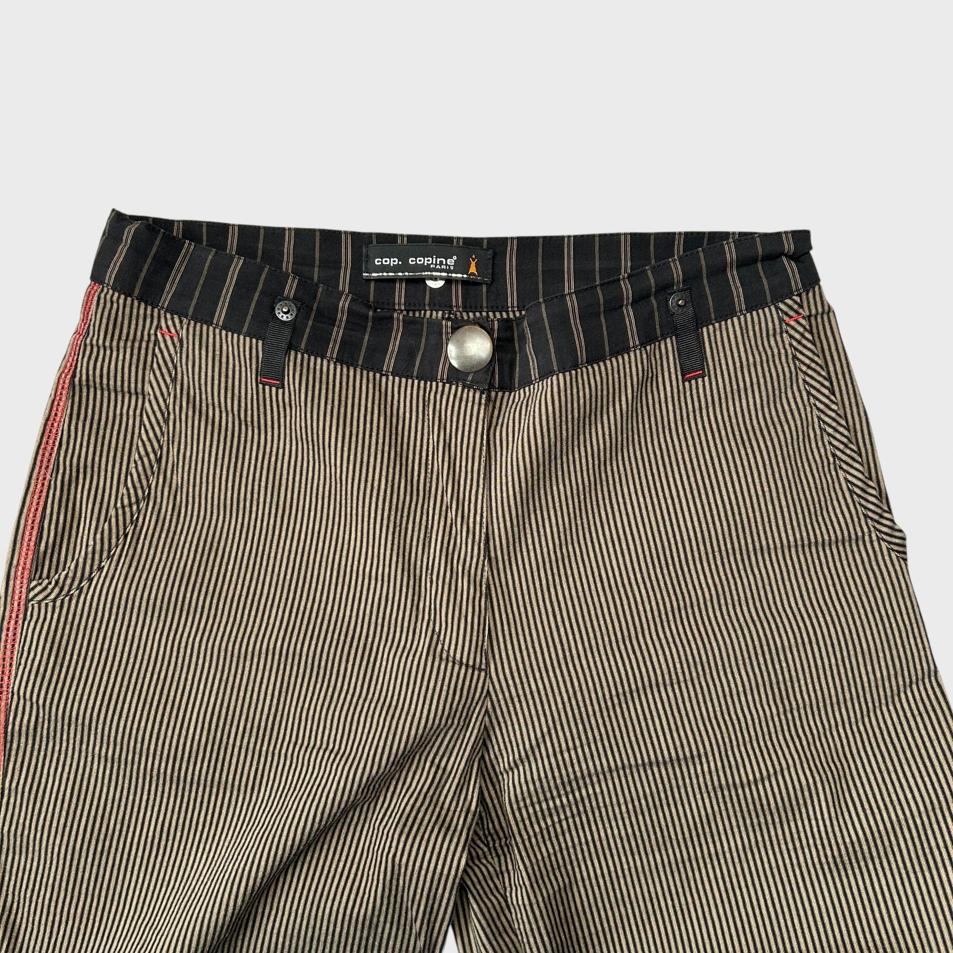 Cop Copine Brown Pinstripe Wide Leg Trousers - S