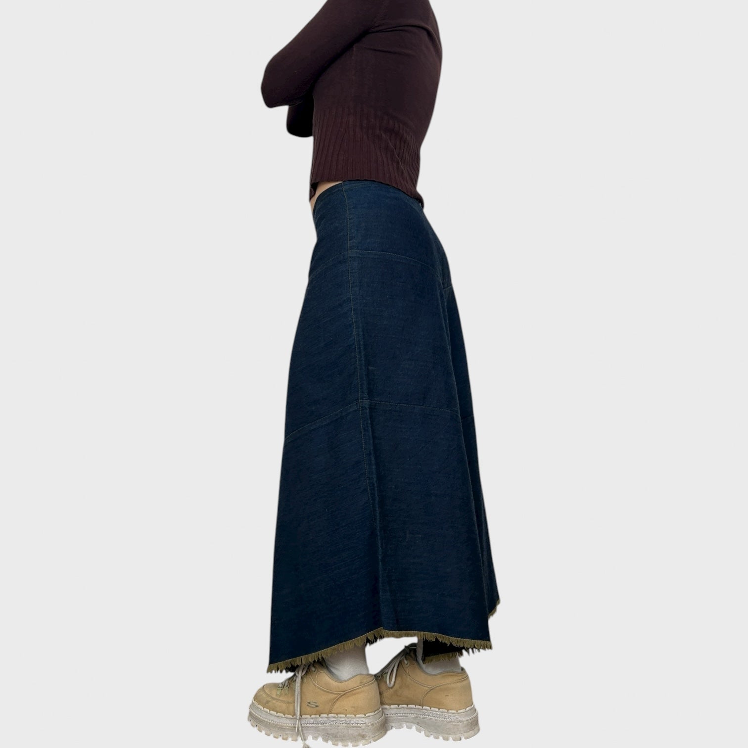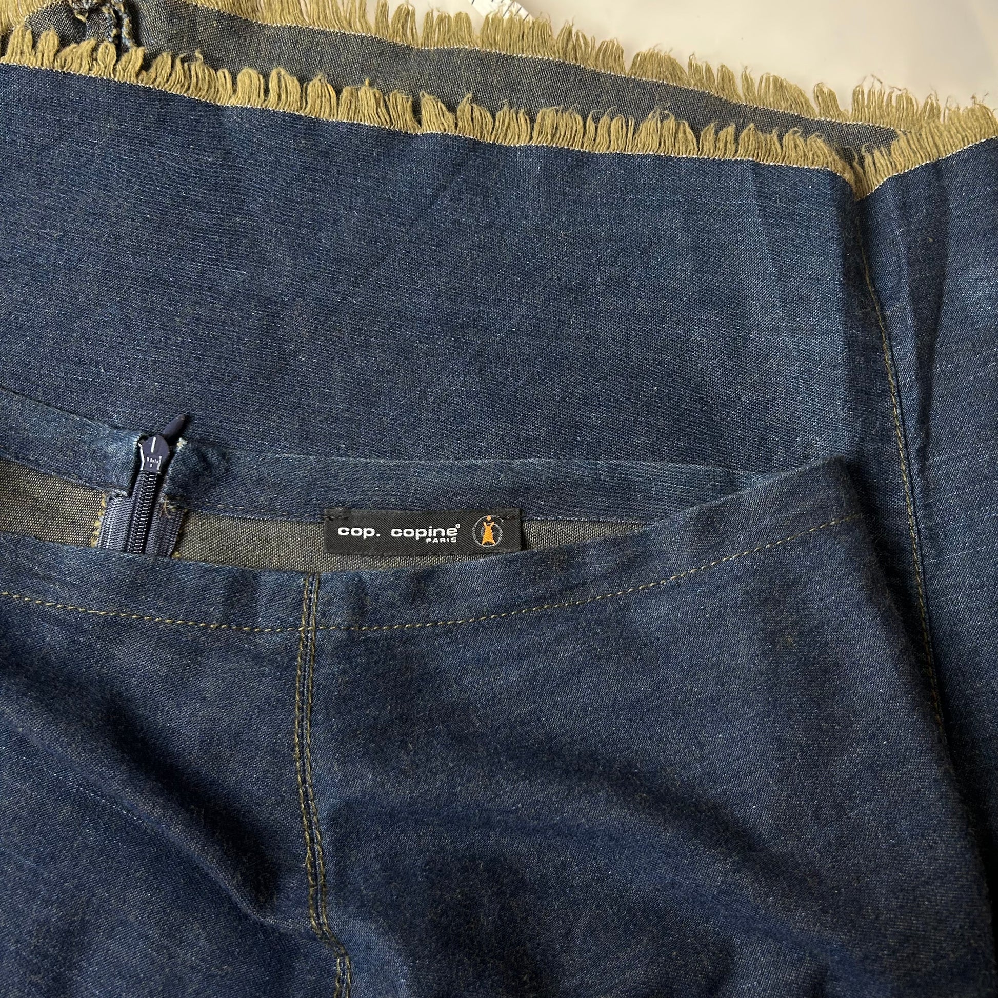 Such a flattering shape with an asymmetric hem and stretchy denim feel.