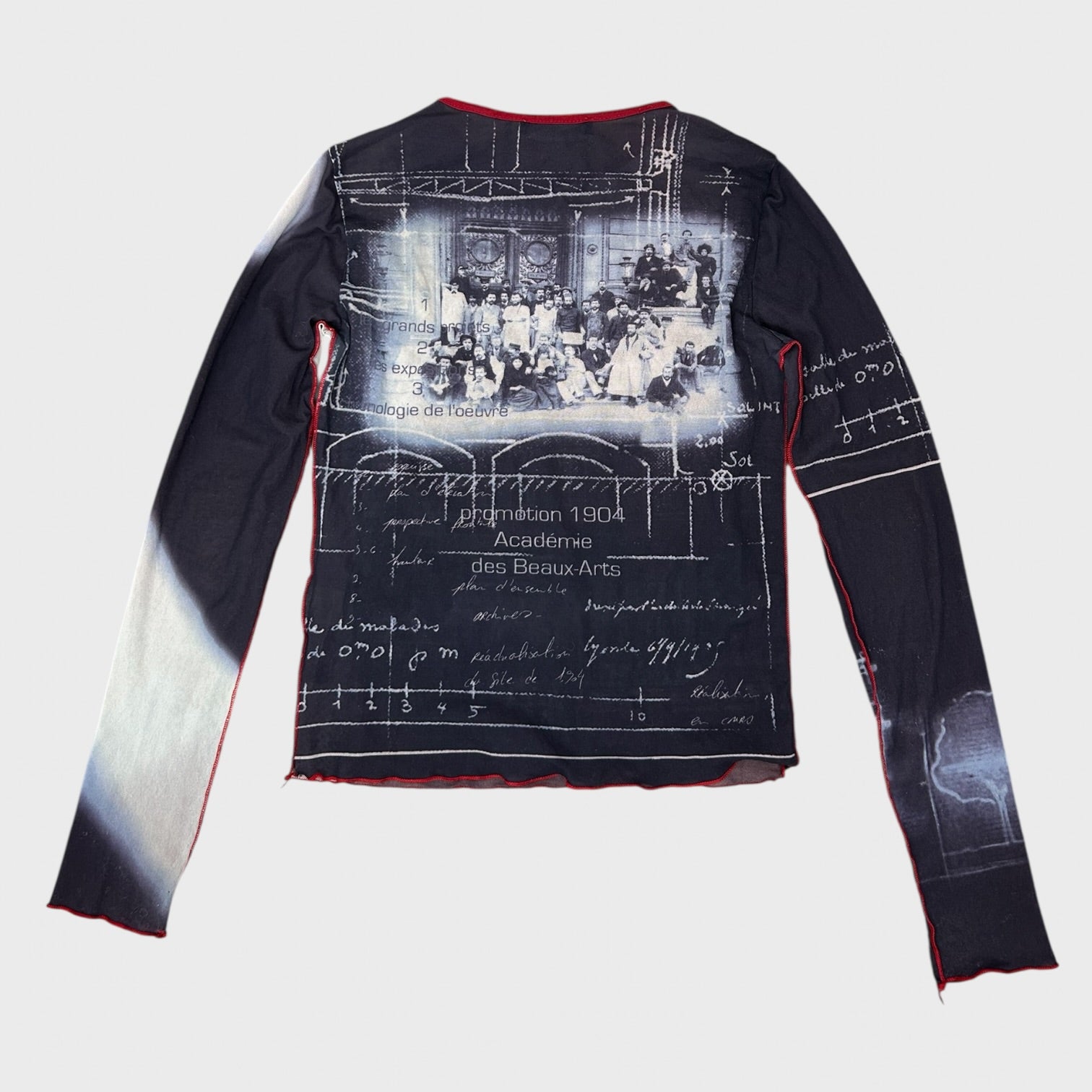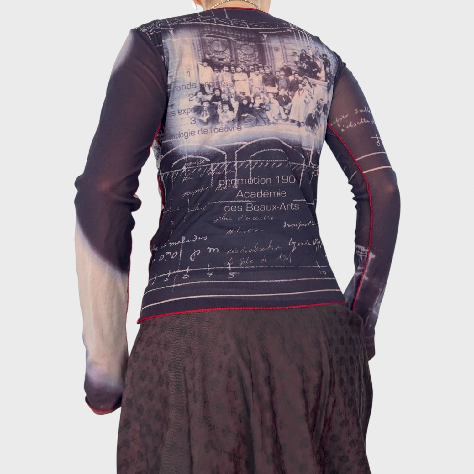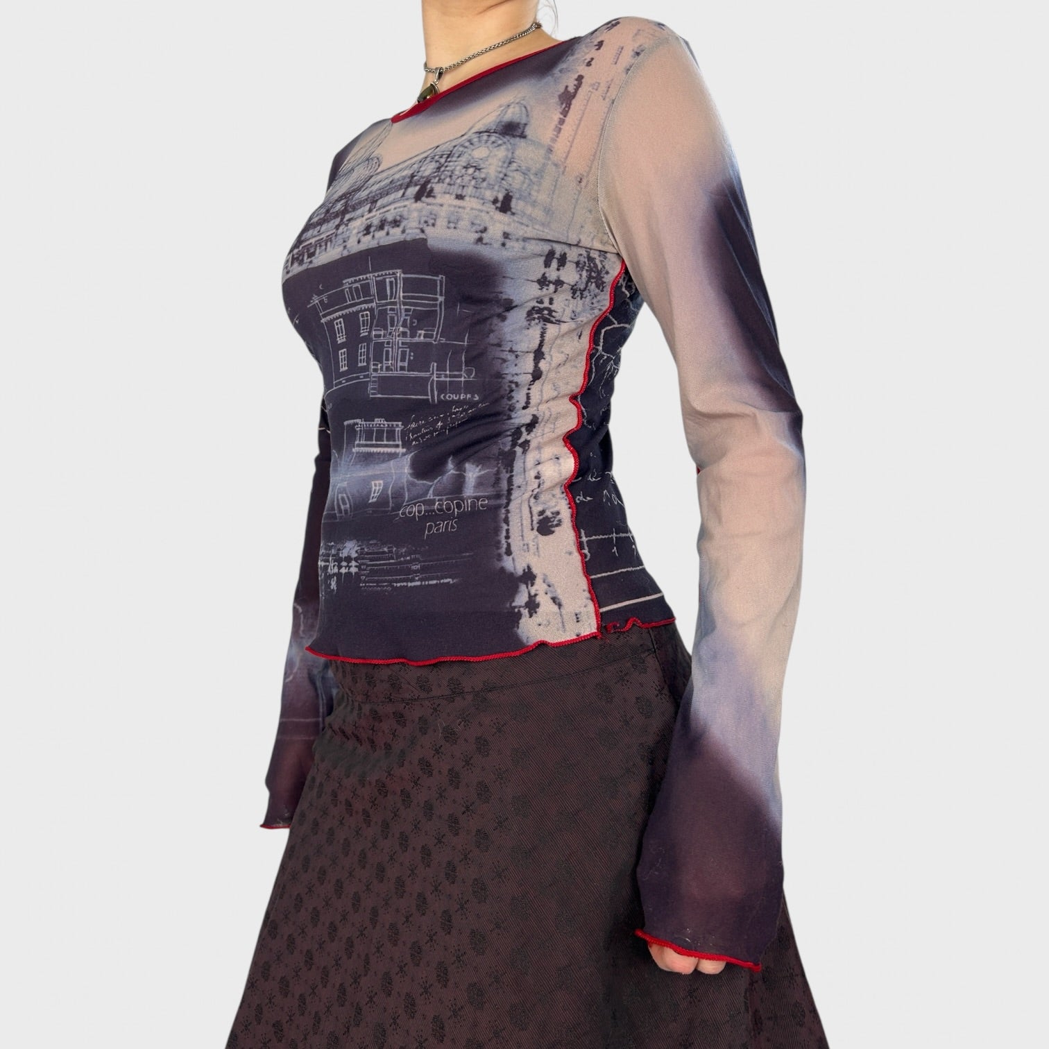 Cop Copine Graphic Paris Print Long Sleeve Mesh Top - S/M