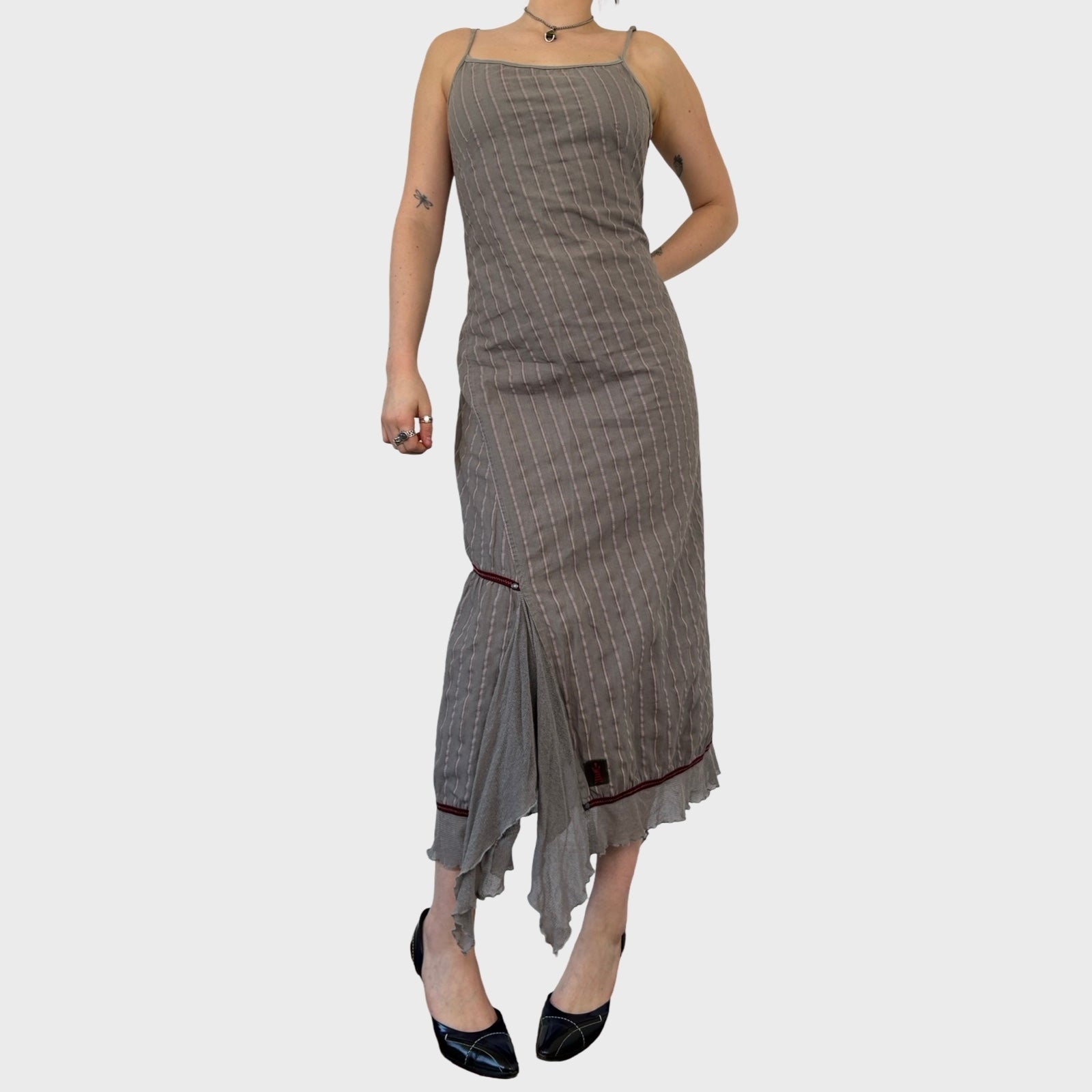 Cop Copine Grey Striped Maxi Dress - M