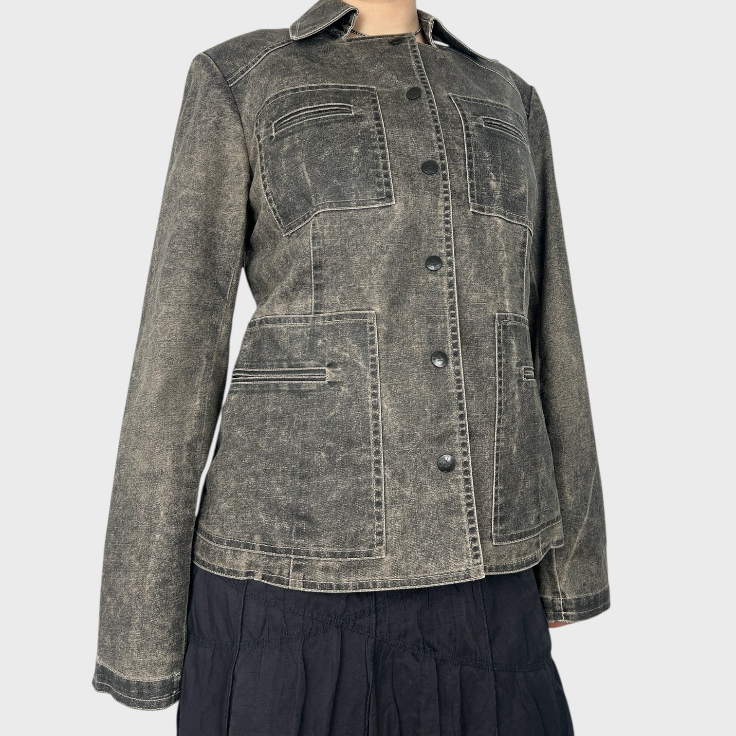 Cop Copine Grey Washed Denim Look Button Jacket - M/L