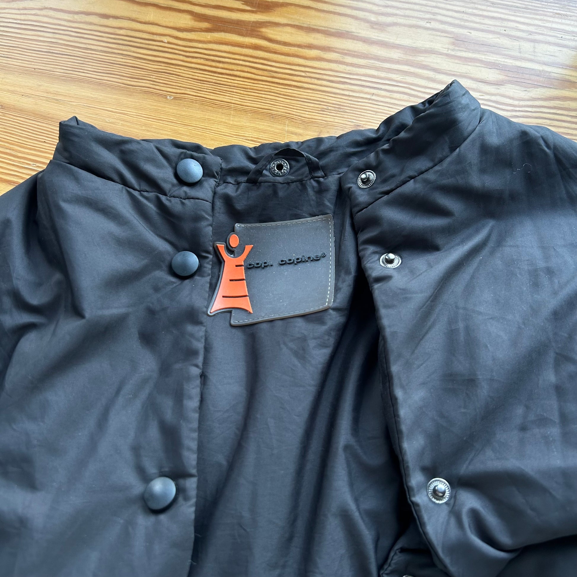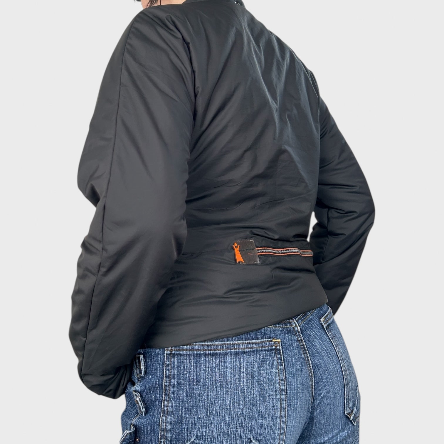 Puffer jacket with high neck, snap buttons and contrast orange details.