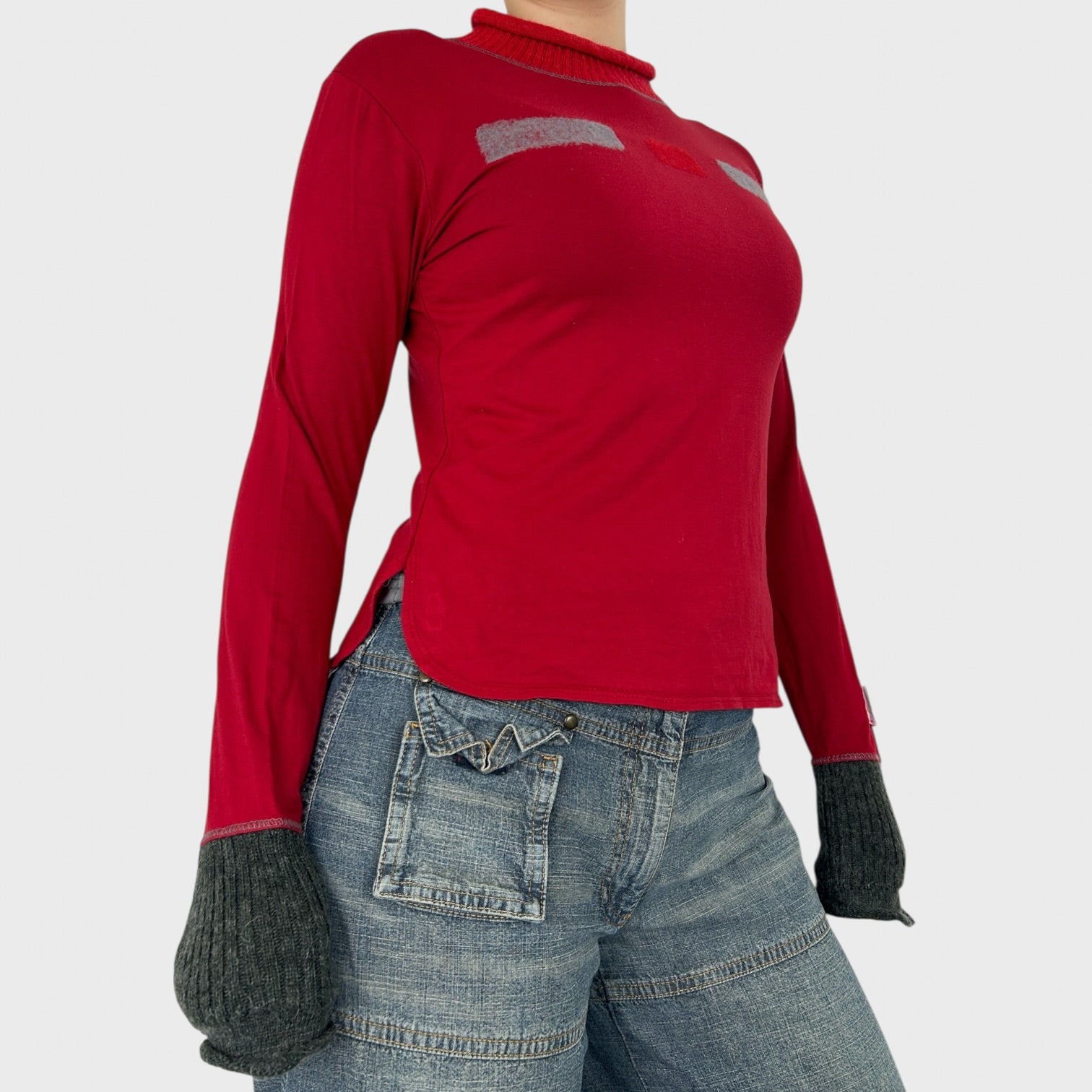Cop Copine Red Bi-Material Graphic Long Sleeve - S