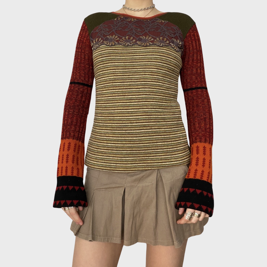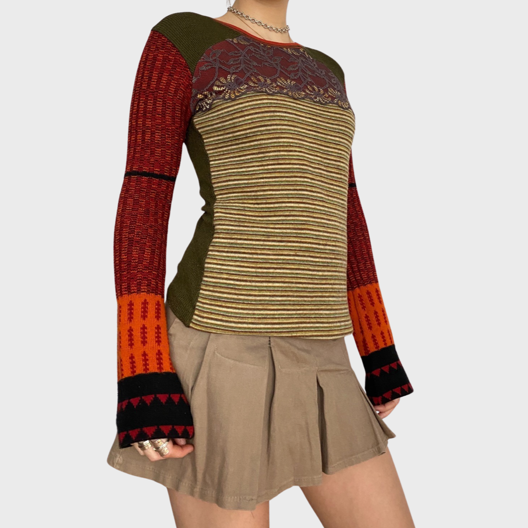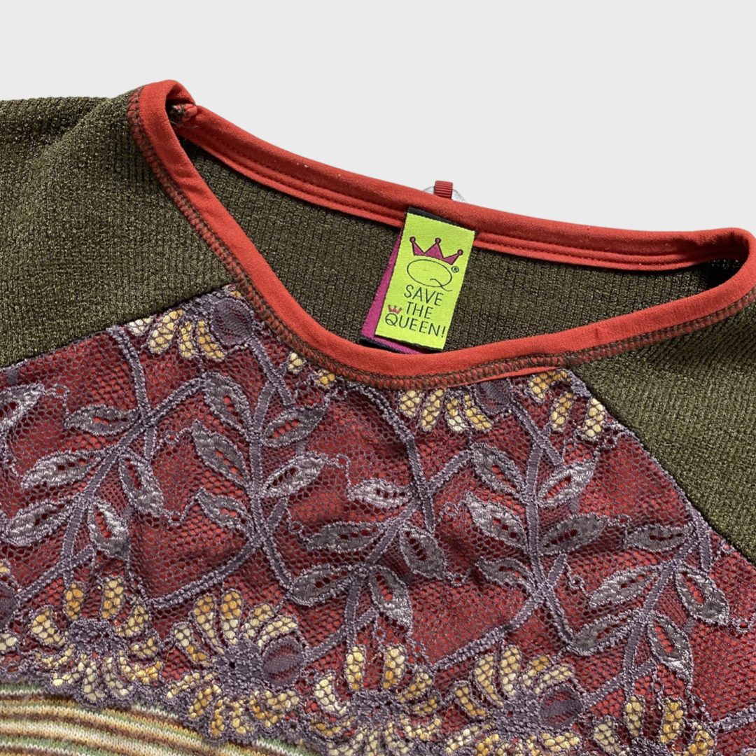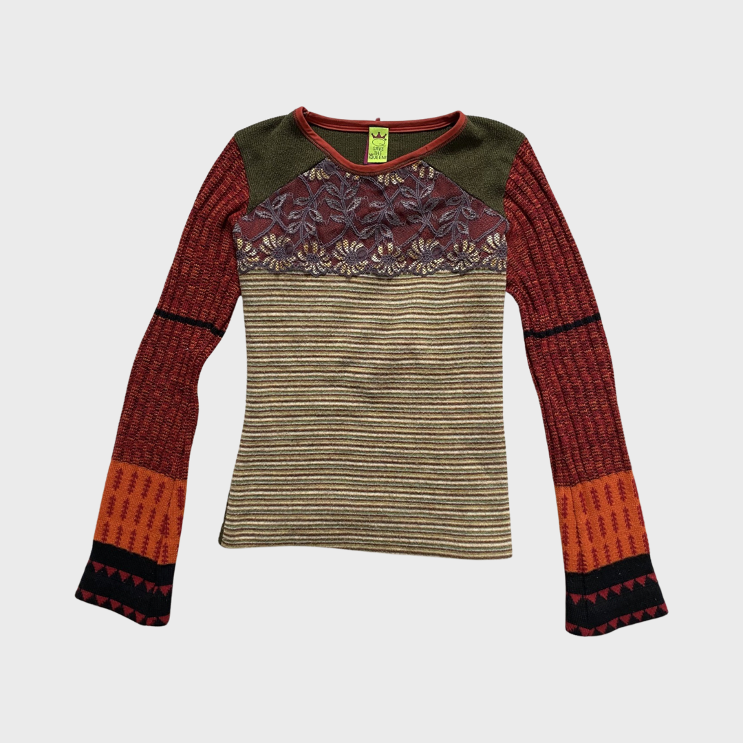Vintage Save the Queen multicoloured jumper. Features various knit sizes and patterns. The most beautiful colours too!