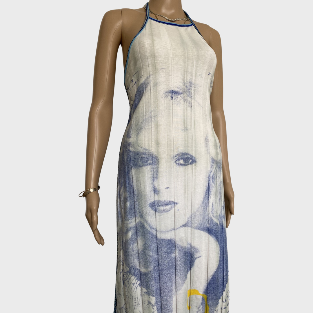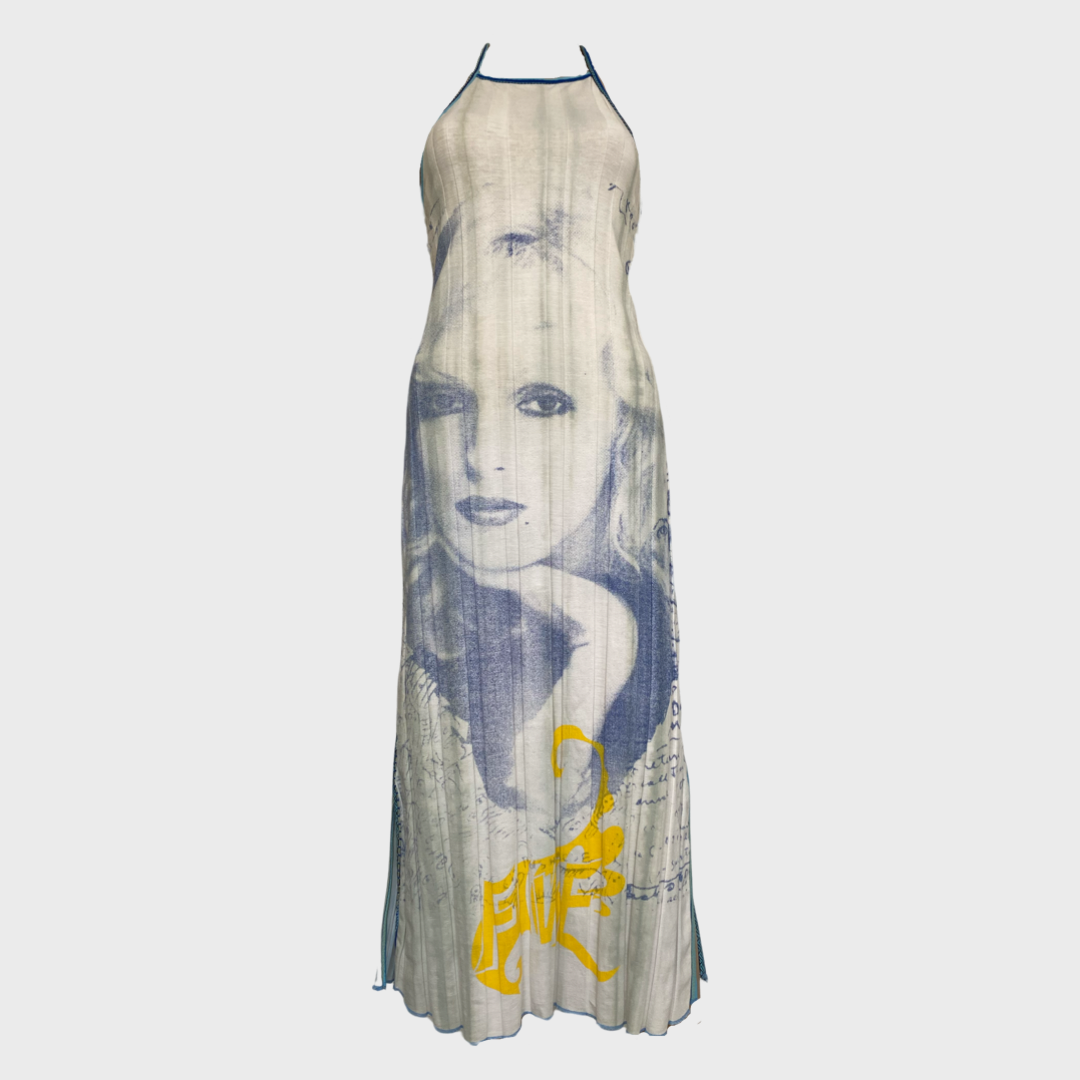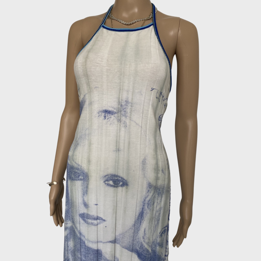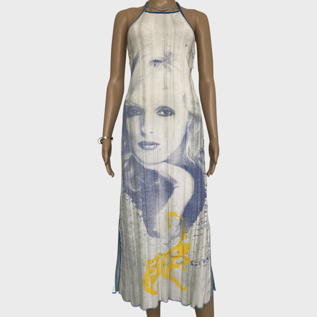 graphic print face motif maxi dress