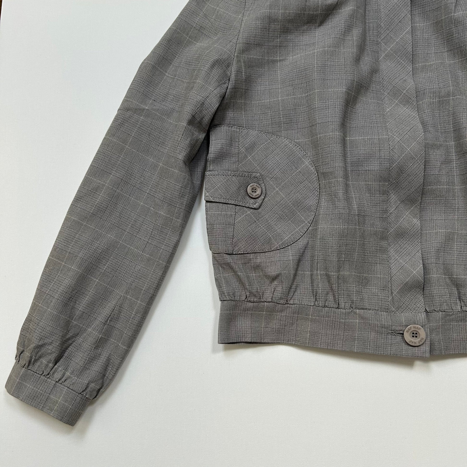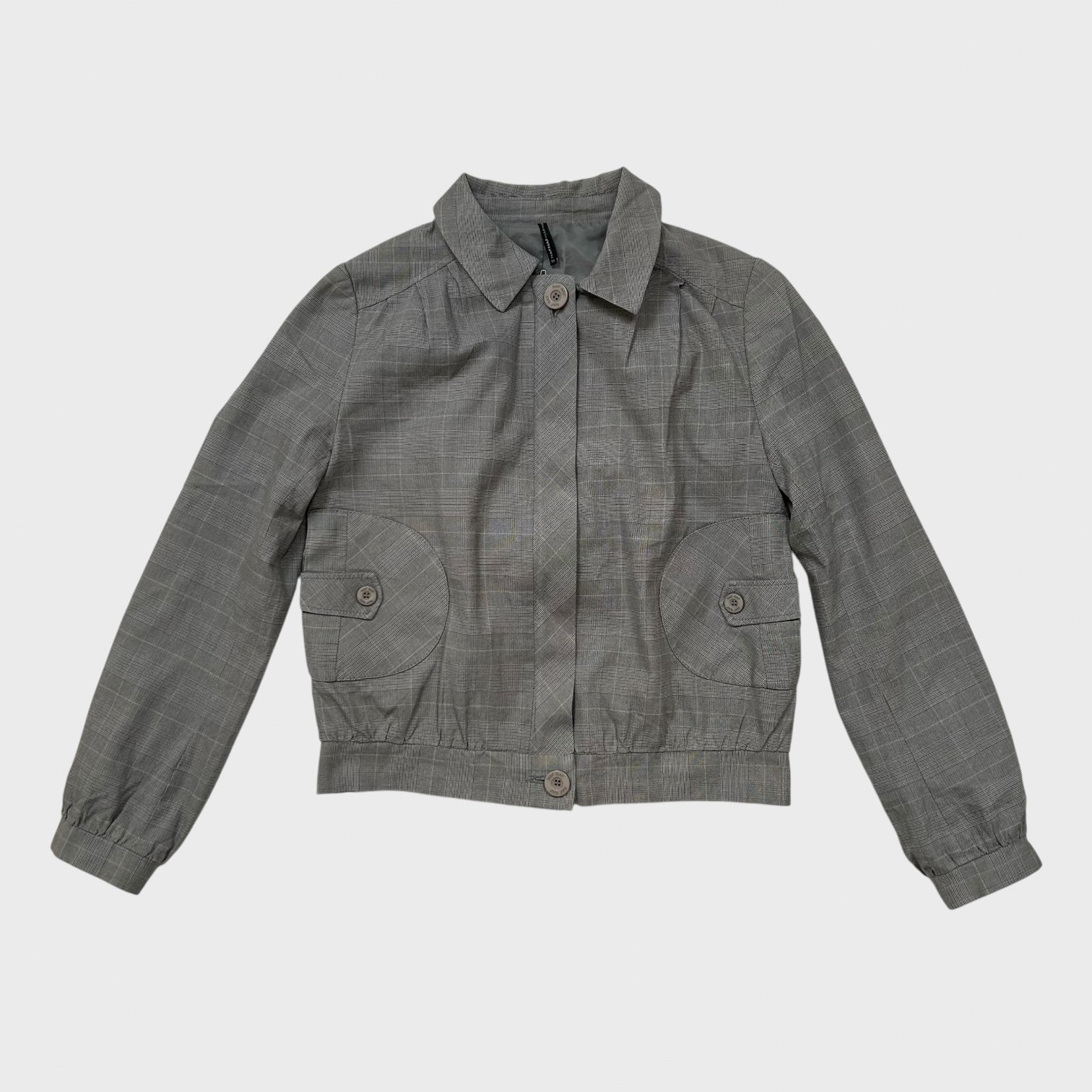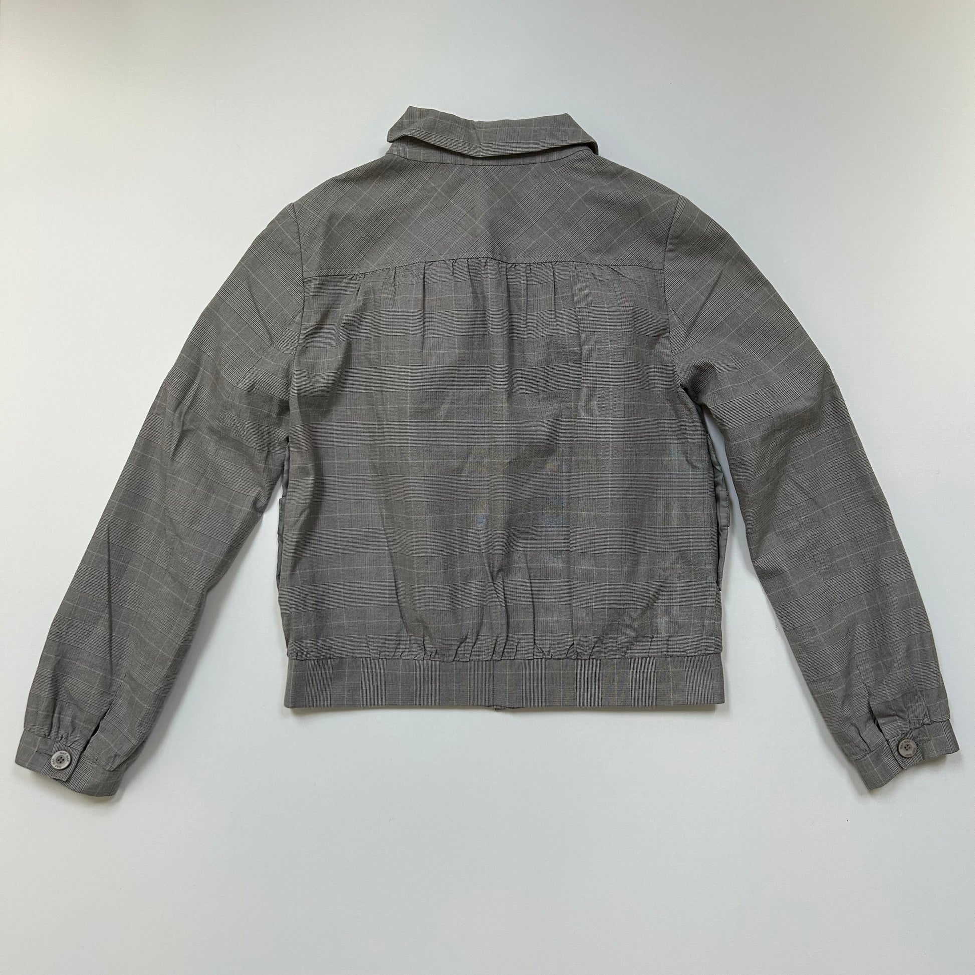 Grey Checkered Zip-Up Collared Bomber Jacket