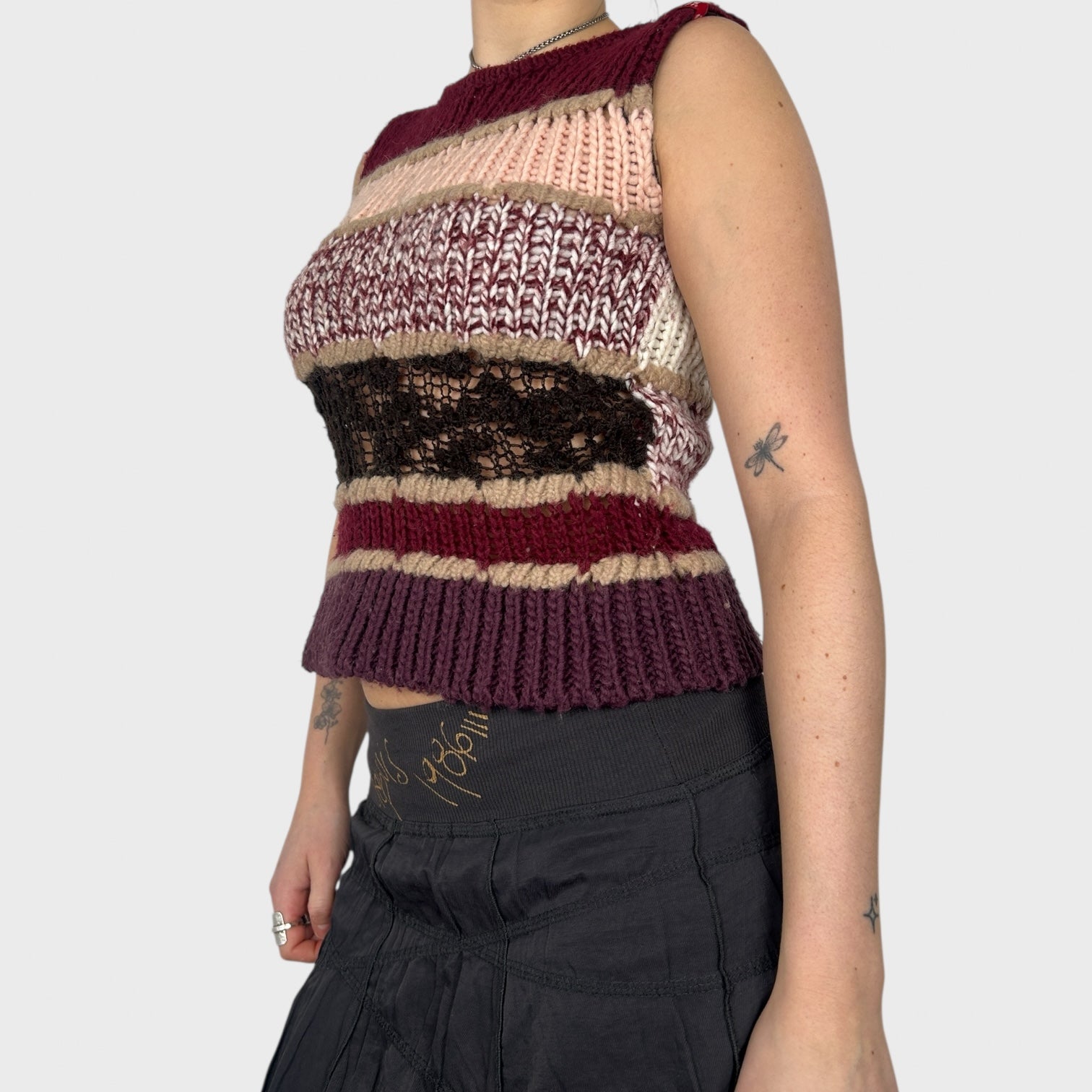 Chunky knit sleeveless jumper. Perfect for layering over a long sleeve or shirt.