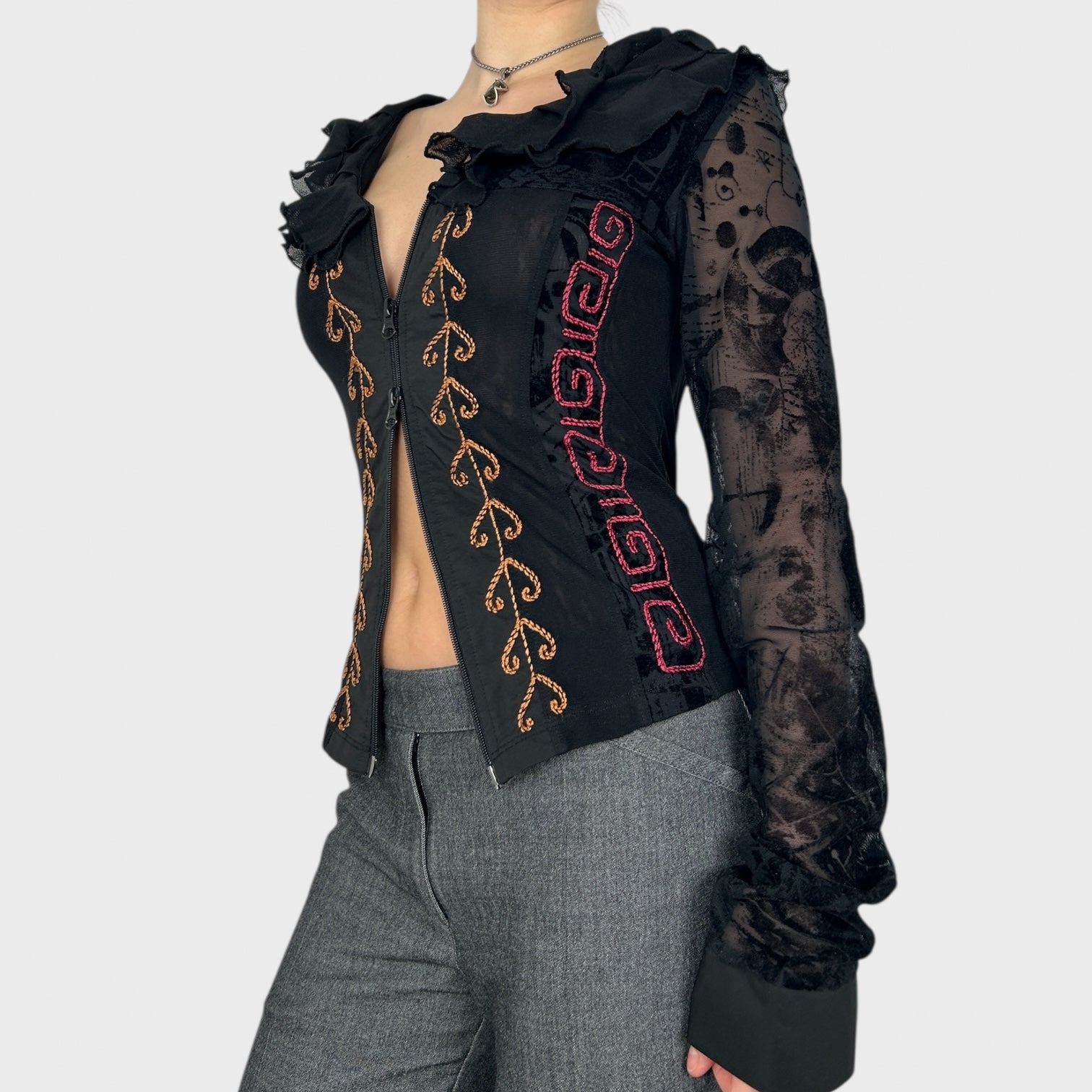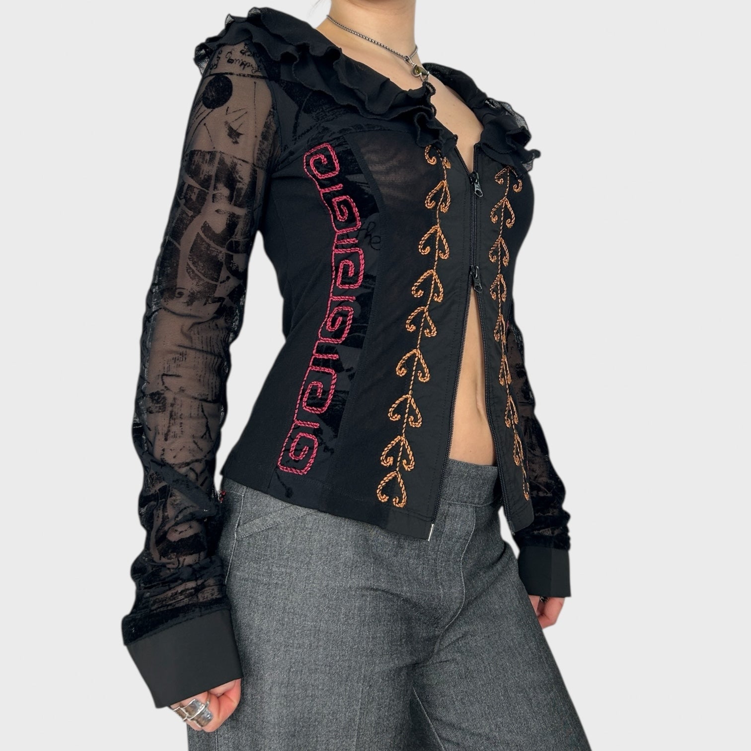 Save the Queen Double-Zip Long Sleeve Mesh Top