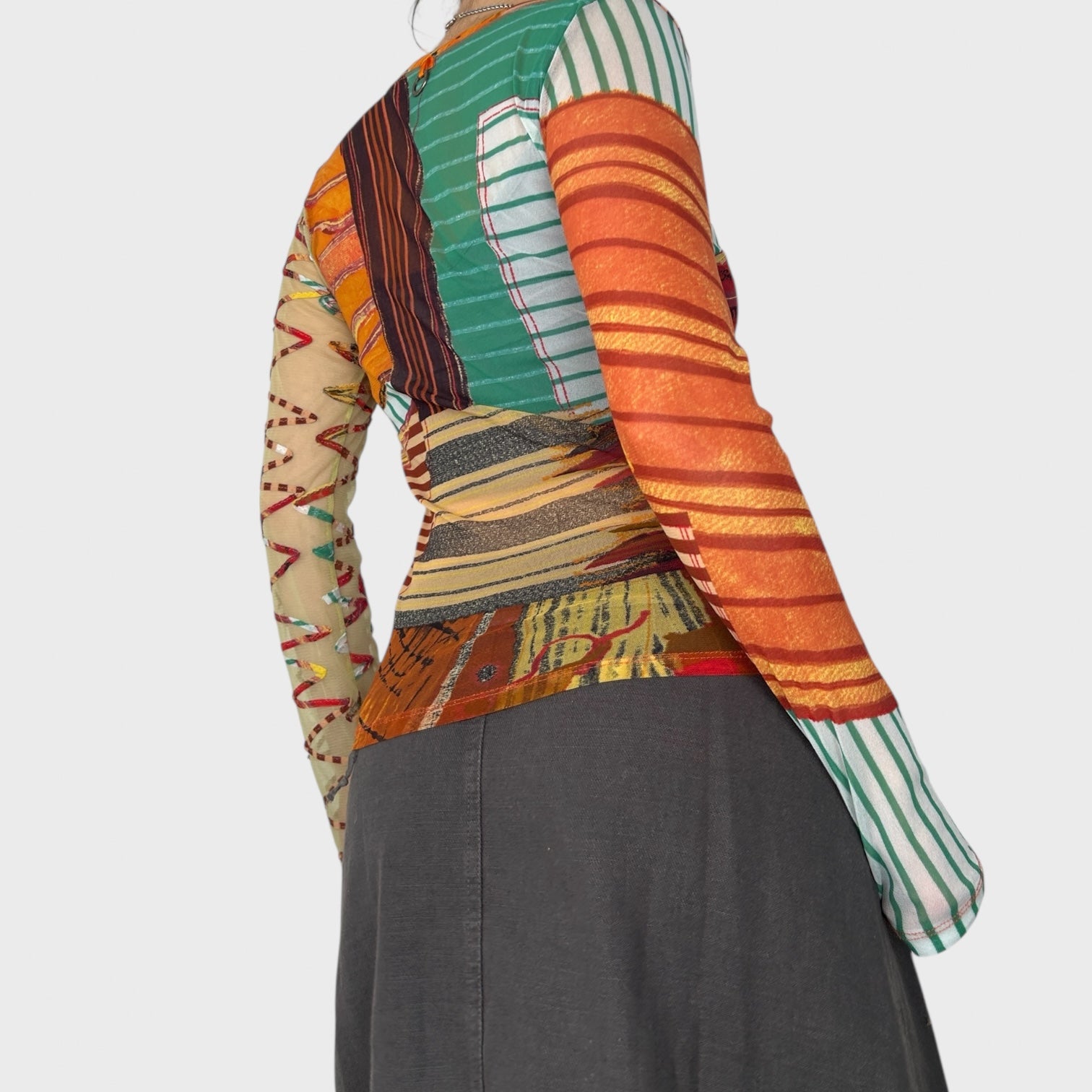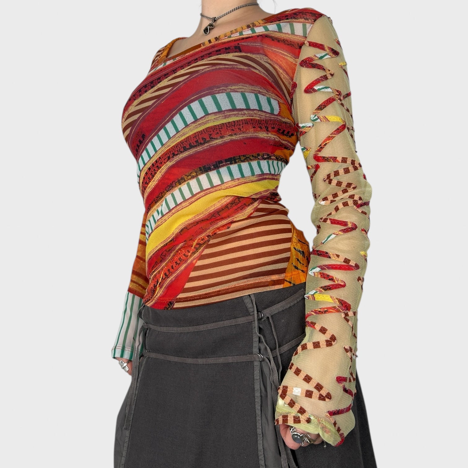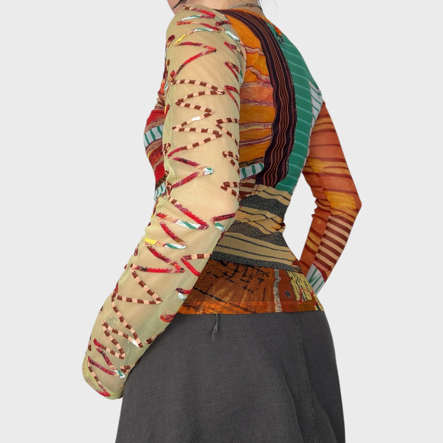 Sheer graphic multicoloured mesh long sleeve