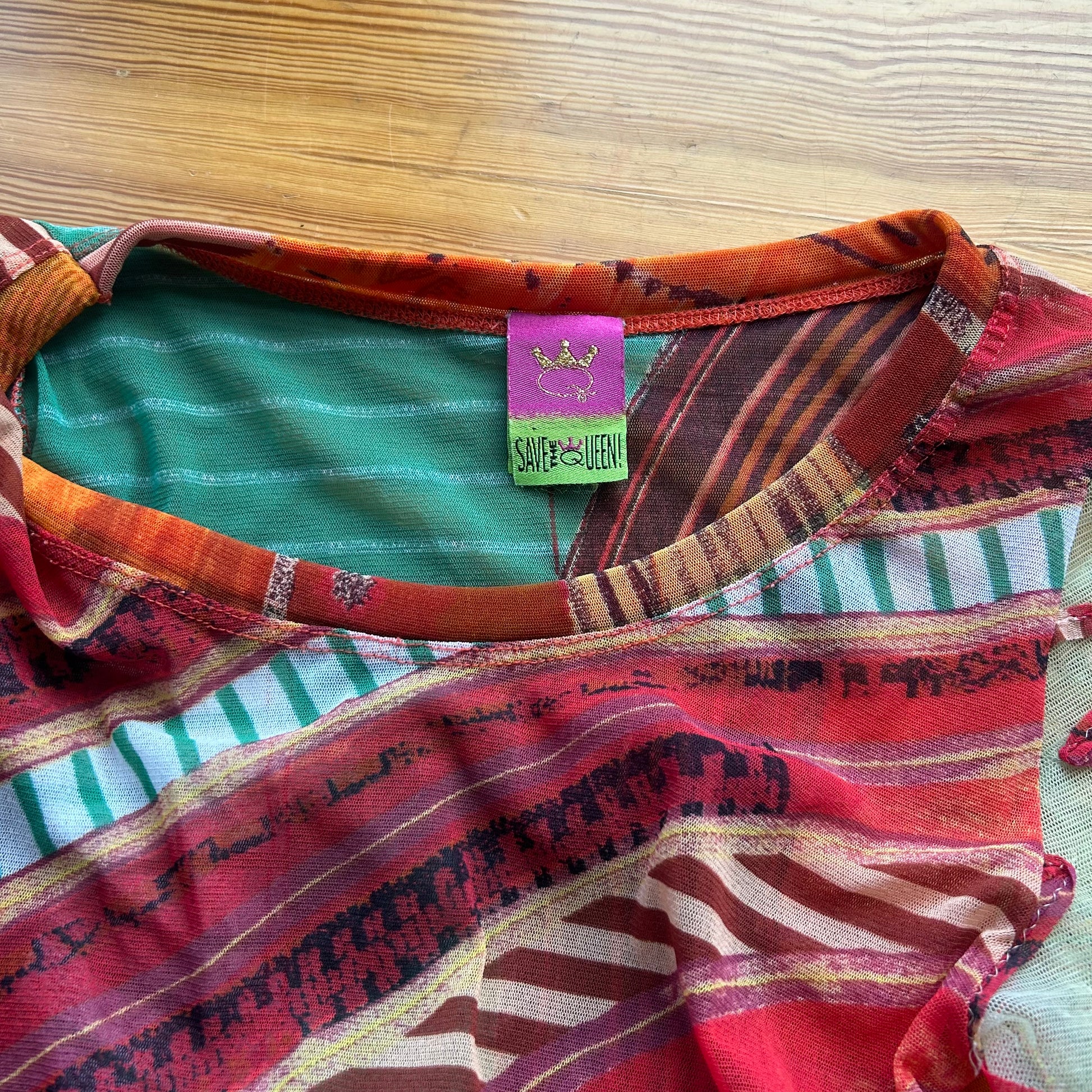 Save the Queen Graphic Mesh Long Sleeve Top - M