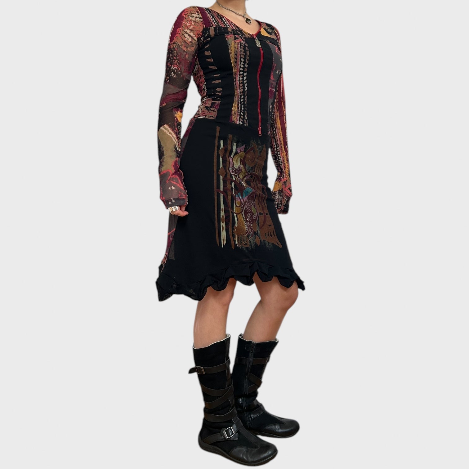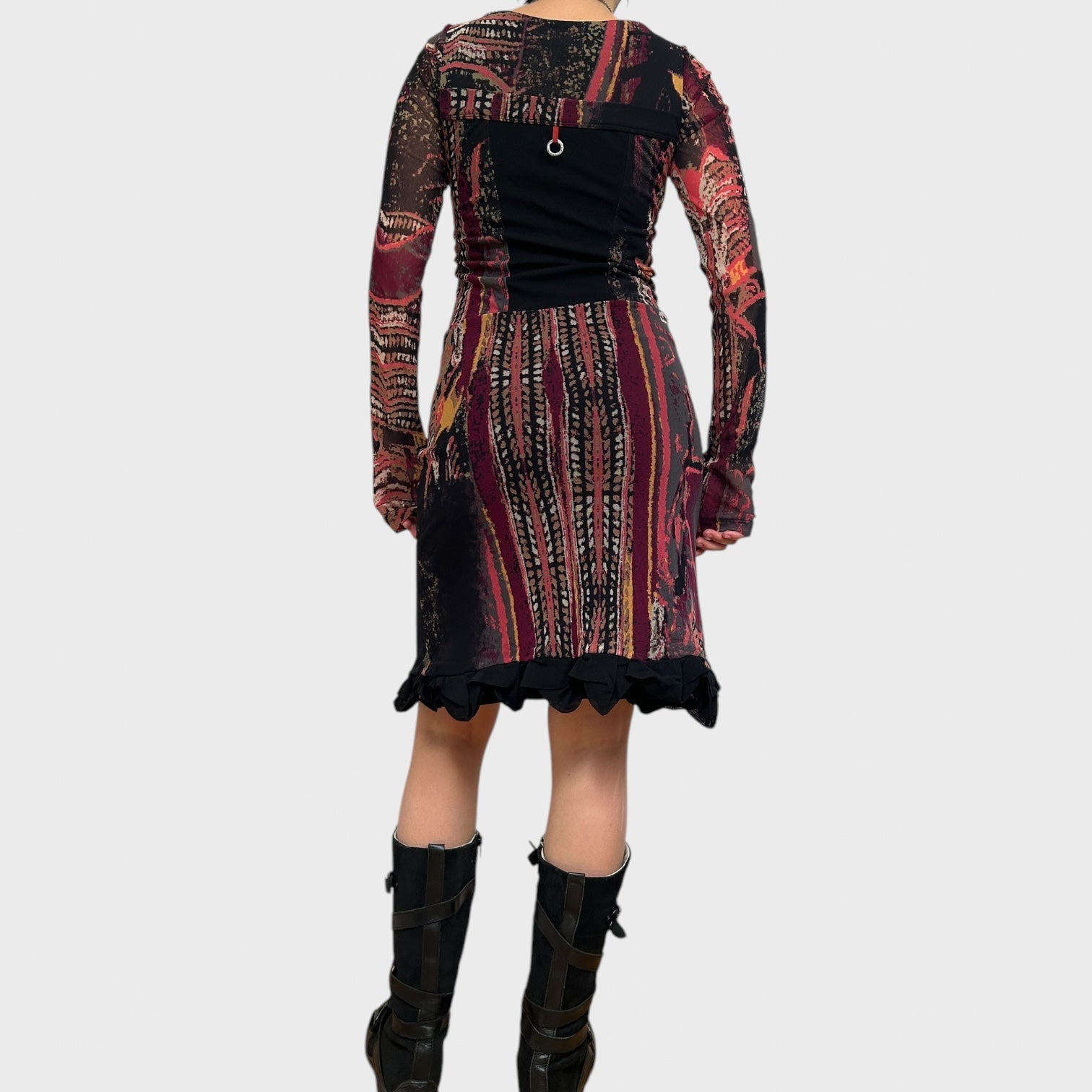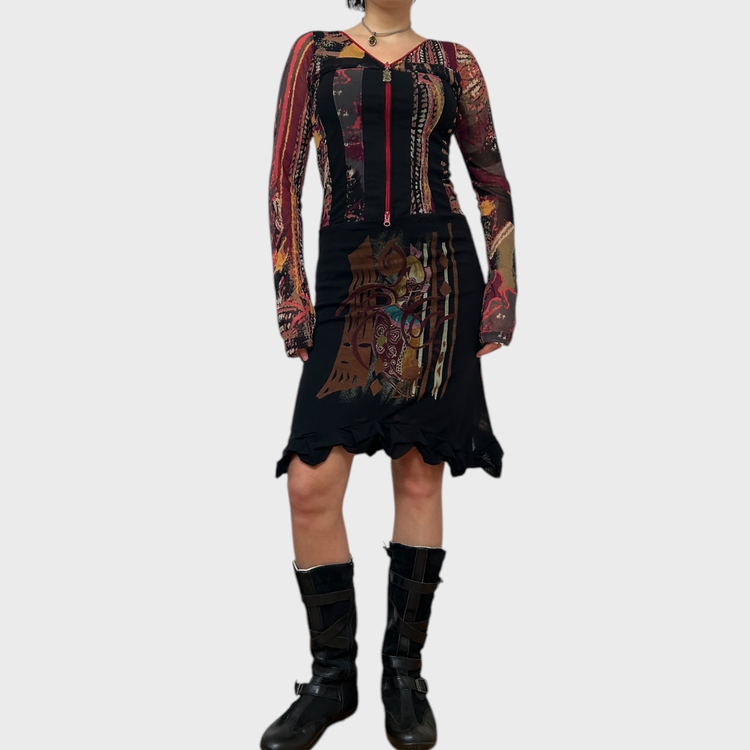 As seen on Bella Hadid. Vintage, graphic, mesh, zip-up, stretchy, midi dress.