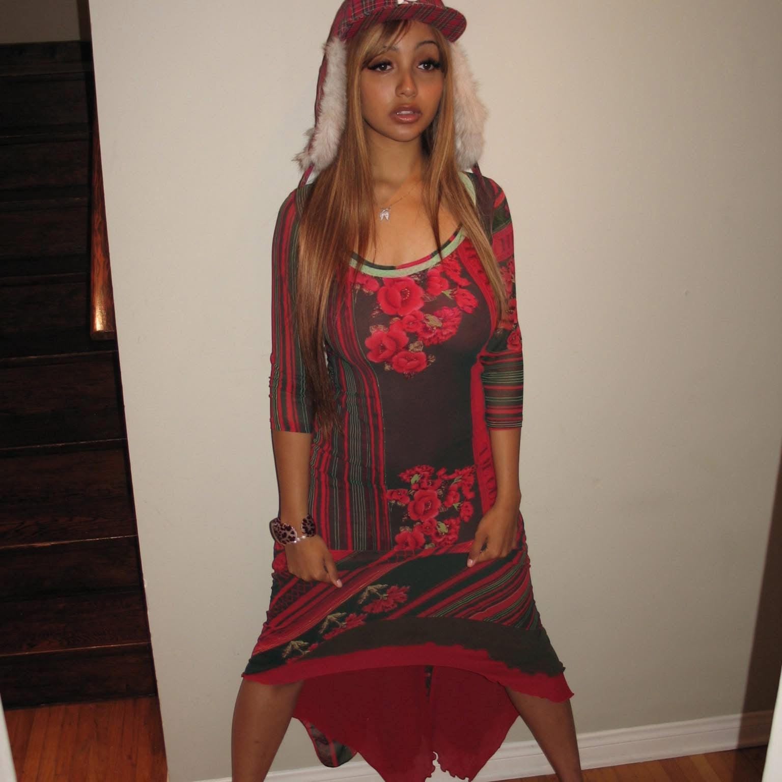 Features an asymmetrical hem and double mesh layered design. Seen on pinkpantheress!